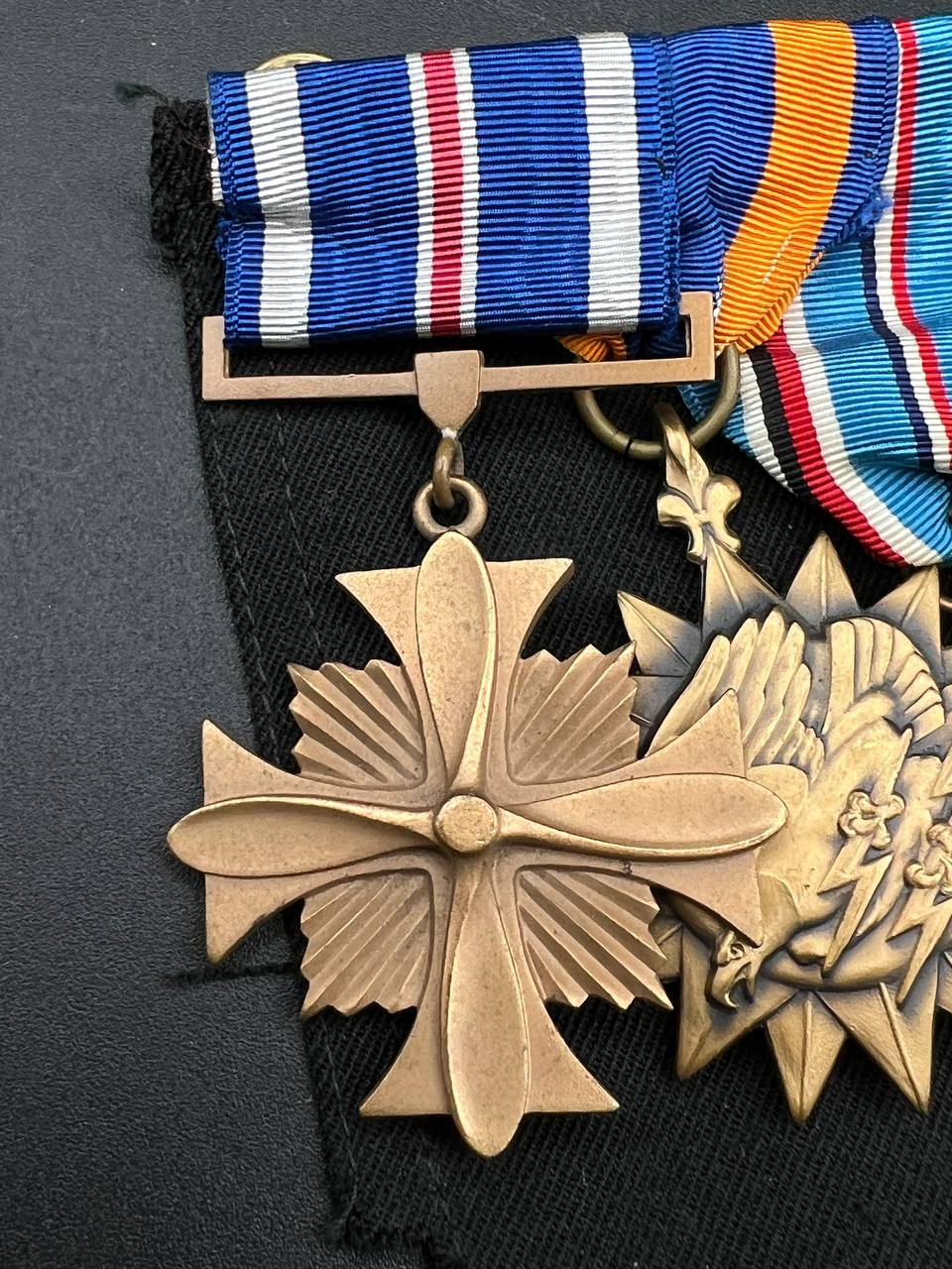 Nicely mounted on cloth backing, original WWII ribbons. A representative and historically important group reflecting the service of a USAAF combat flyer in the Pacific theater.